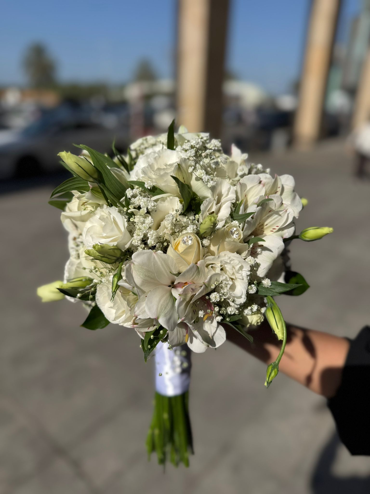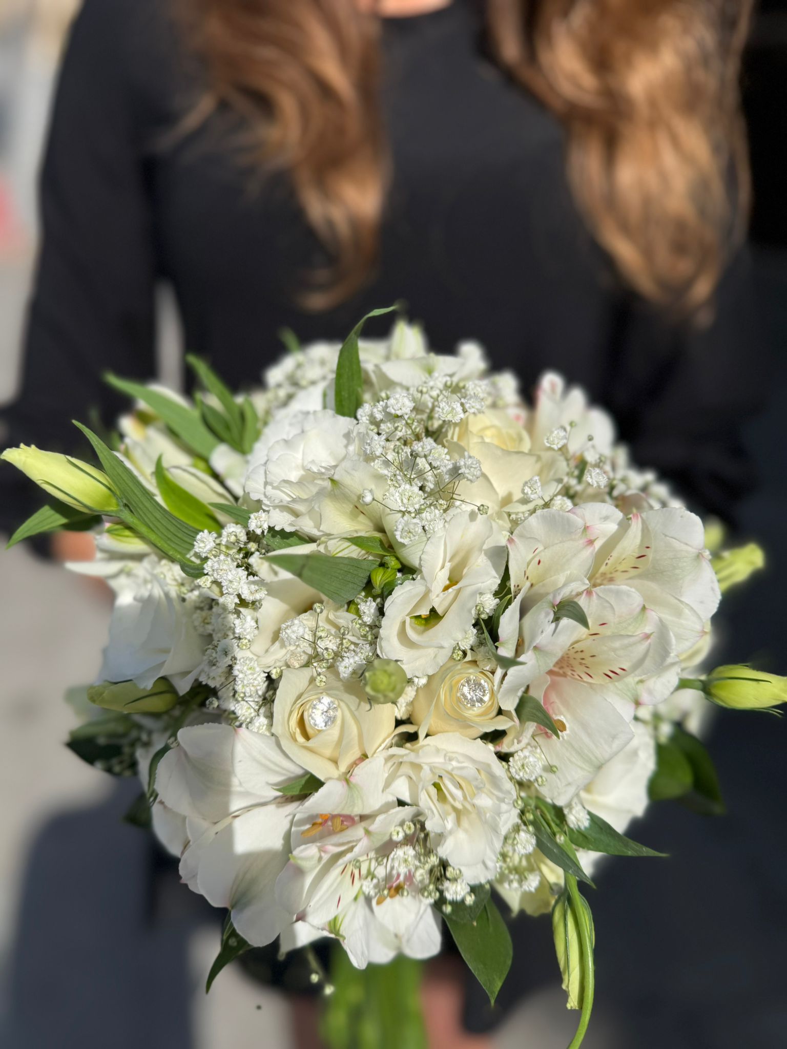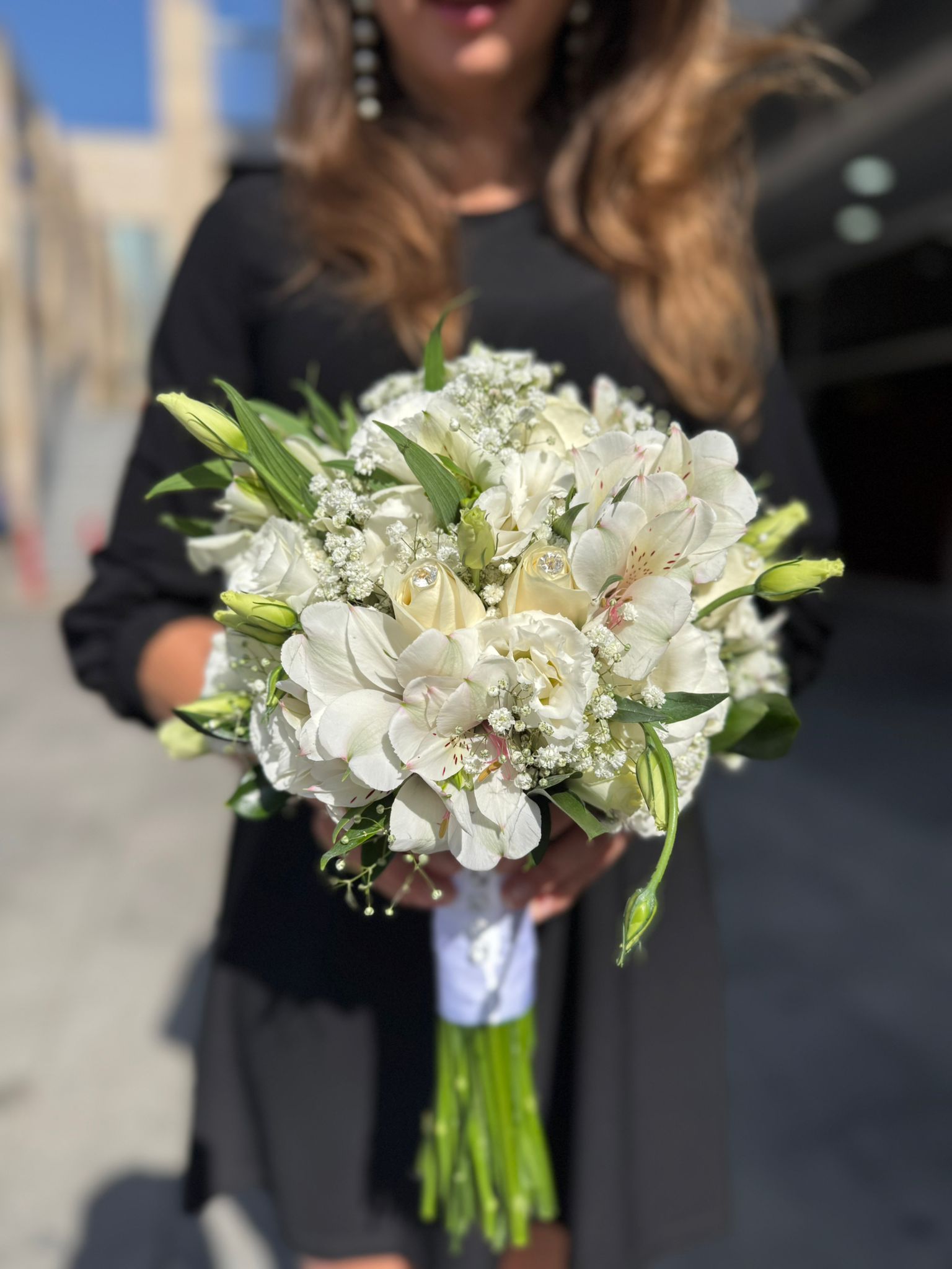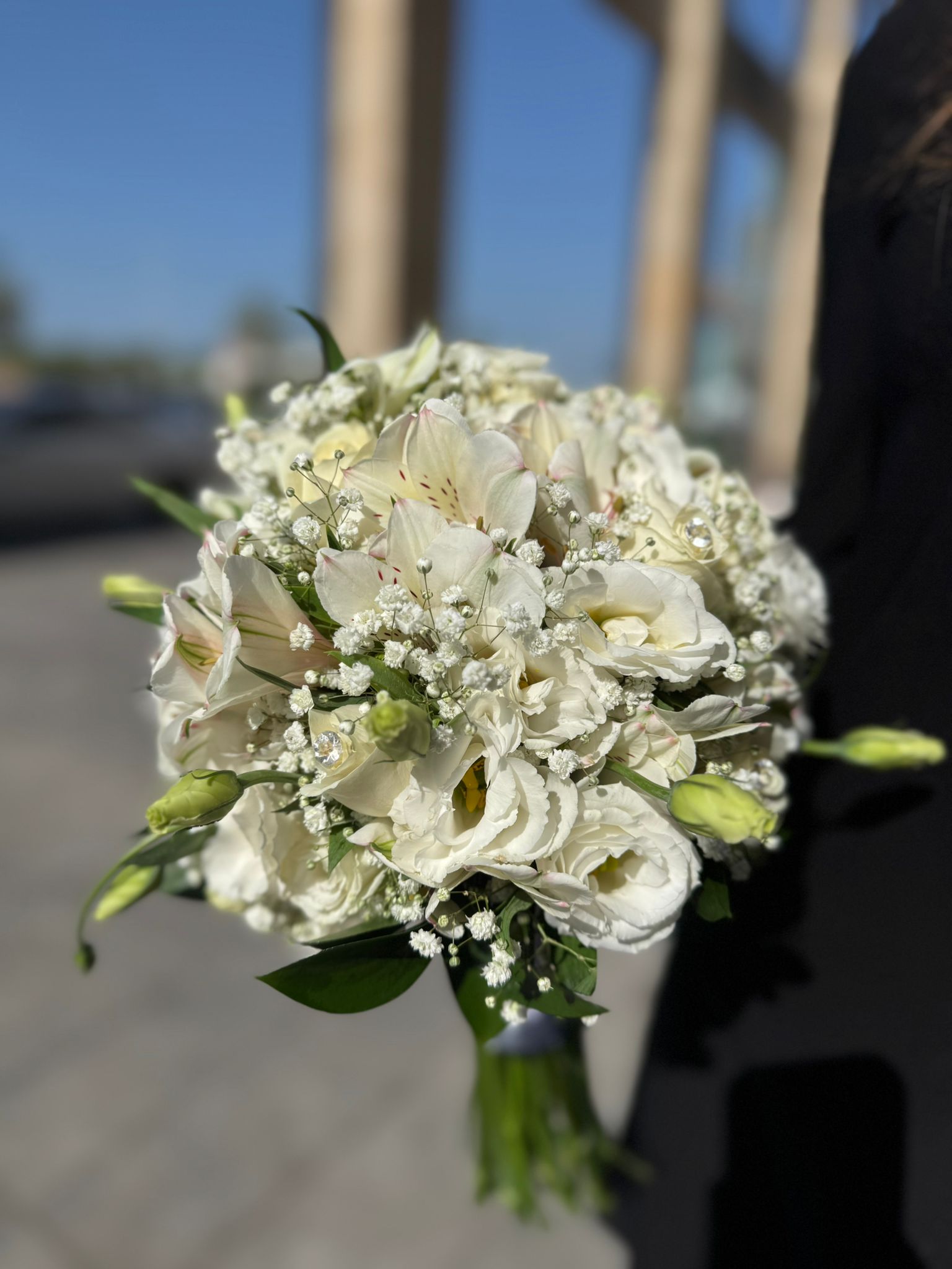 שילוב הרמוני של פריחה לבנה ונקייה שיוצר מראה רומנטי, רך ויוקרתי.